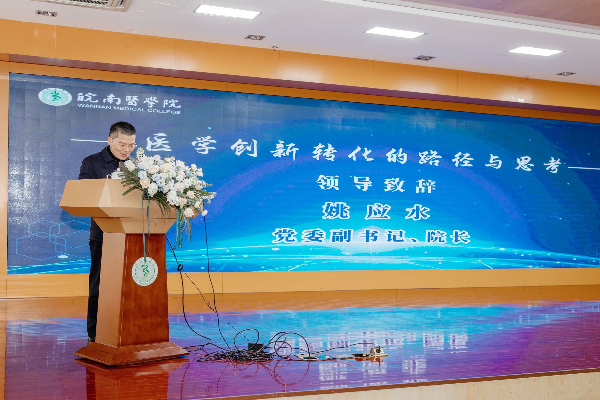 姚应水在致辞中表示,学校目前正全力推进产学研创中心建设,将提升科研成果转化水平作为重中之重。夏敏主任在医学创新转化领域成果丰硕,有着独到的见解和丰富的实践经验。此次论坛,将为学校科研成果转化以及产学研创中心建设发展提供新思路和新方法。希望参会人员充分把握学习机会,深入思考如何将科研成果更好地转化为实际生产力,助力学校在医学创新转化方面取得新突破。