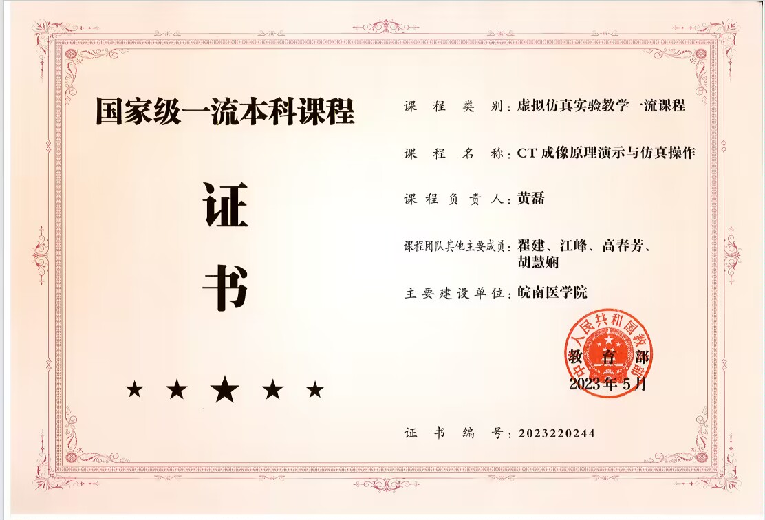 专业建设水平持续提高。学院获批国家级一流课程1门;医学影像学专业获批省级一流专业建设点,并已实现在专业教育阶段全部开展小班化教学;生物医学工程专业获批省级专业综合改革试点专业,对照工科专业认证标准,推进专业内涵建设;医学影像技术专业以技能大赛为引领,实施“以赛促教、以赛促学”。医学影像学院现拥有1个省级仿真模拟实验教学示范中心和1个省级高水平教学团队;生物医学工程和医学影像学两个本科专业顺利通过省级本科专业评估;学院教师团队主编或参编教材6部。