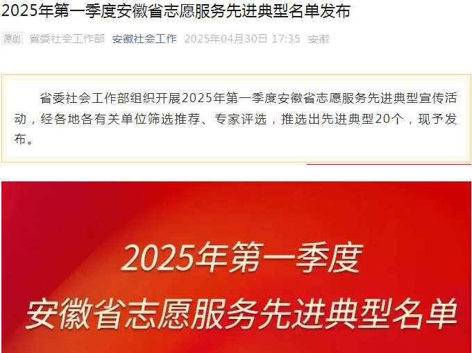 近日,安徽省委社会工作部发布2025年第一季度安徽省志愿服务先进典型名单,我校“遗路有爱”遗体捐献公益事业赋能行动名列其中。这一荣誉的获得不仅是对我校师生积极参与和努力的认可,更是对我校生命教育新范本的充分肯定。