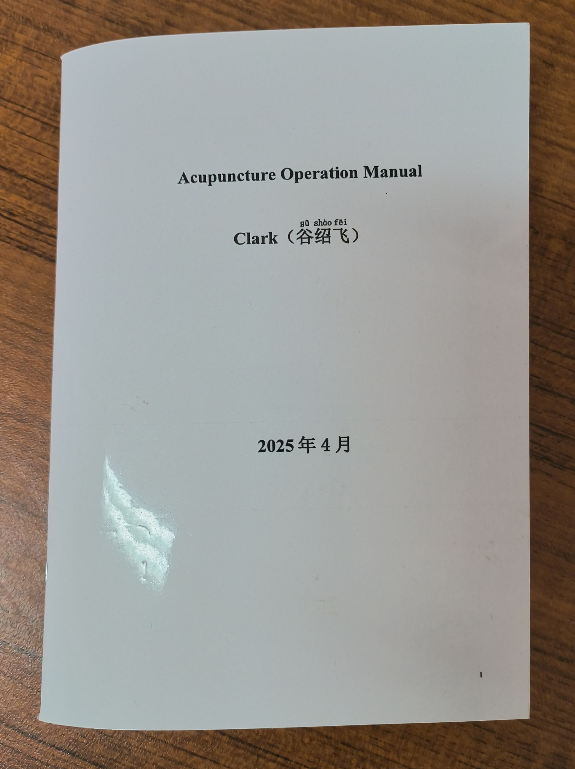 自2024年9月中国(安徽)第十二批援南苏丹医疗队抵达朱巴执行援外医疗任务以来,谷绍飞医师凭借精湛的医疗技术,成功诊治数以千计的南苏丹病患,同时还带教了朱巴教学医院7名当地医师,用实际行动为当地医疗卫生事业发展注入中国传统医学力量。同时,基于对当地医疗需求的深刻了解,谷绍飞利用业余时间对针灸操作资料进行反复删减与整理,最终编辑完成了英文版《针灸操作手册》。该手册重点介绍了经络走向、穴位位置以及常见疾病的选穴方法。为便于当地人员学习和应用,该手册尽可能减少了复杂的理论阐述,将重点放在实际操作上,使初学者能够快速上手。