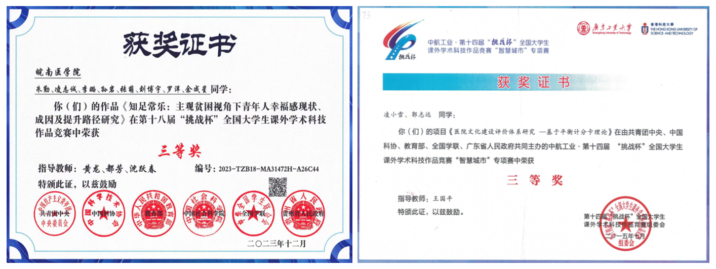 在学科领域竞赛中,获全国大学生心理与行为实验赛、公共管理决策模拟赛、金融投资大赛等国家级专业学会举办的竞赛二等奖3项、三等奖4项,省级一等奖10项,省级银奖3项、铜奖8项。
