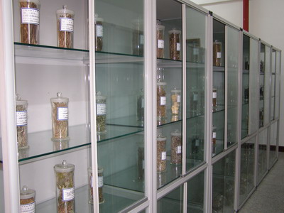 药学系标本陈列室位于三号实验楼南五楼,分为蜡叶标本室和中药材标本室。其中,蜡叶标本室已拥有标本126幅,中药材标本室有标本330种。收藏的药材标本既包括黄芪、丹参、大黄、甘草等临床常用品种,也包括冬虫夏草、藏红花、麝香、牛黄等贵重药材。