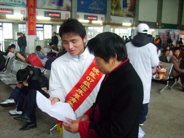 整装待发 ![]() 同学们冒雨在步行街向市民讲解 ![]() 同学们在火车站向旅客耐心讲解 ![]() 同学们在汽车站向旅客耐心讲解 (医学一系 杨钟会/文 姜皖杰、汪文君、李鸿显/摄 宣传部 任苔蓉/审) |