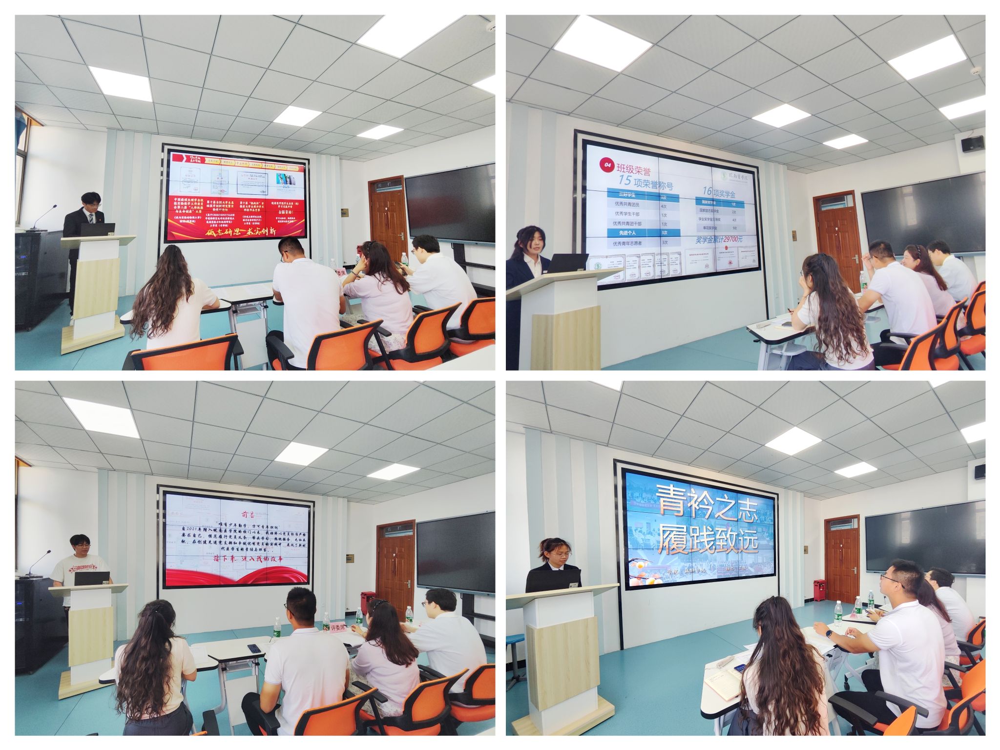 在班级展示环节,各班级代表围绕班级特色,从组织构建、思想建设、学风建设、学业成果、文化活动及班级荣誉等多个维度进行汇报。他们用详实的数据、生动的案例,勾勒出一个个团结向上、积极进取的班集体形象,充分彰显了同学们热爱校园、勤学善思、勇于创新的良好学风。“优秀学子”评选环节,8 位候选人依次上台,从学业成绩、科研创新、社会实践、志愿服务等方面分享自己的成长故事。他们中,有在专业学习中名列前茅、勇攀学术高峰的 “学霸”,有积极投身科研创新、在实验室里探索未知的 “科研新星”,还有热心公益事业、用实际行动传递温暖的 “志愿先锋”,充分彰显了学院学子全面发展、积极向上的青春风采。