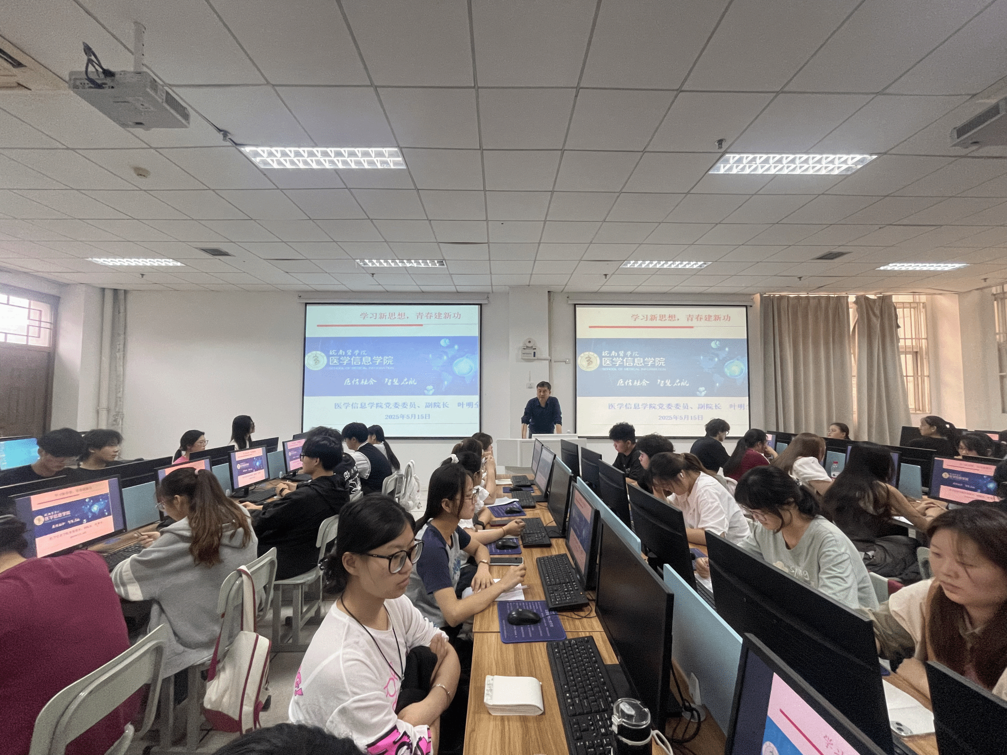 医学信息学院副院长叶明全以《学习新思想 青春建新功》为题,从“学习新思想,汲取奋进力量”和“青春建新功,展现时代风采”两方面为入党积极分子讲授党课。他结合学院的专业特色和学科优势,鼓励入党积极分子将学习新思想融入日常学习和科研工作中,勇于创新、敢于实践,努力在青春的赛道上跑出当代青年的最好成绩。
