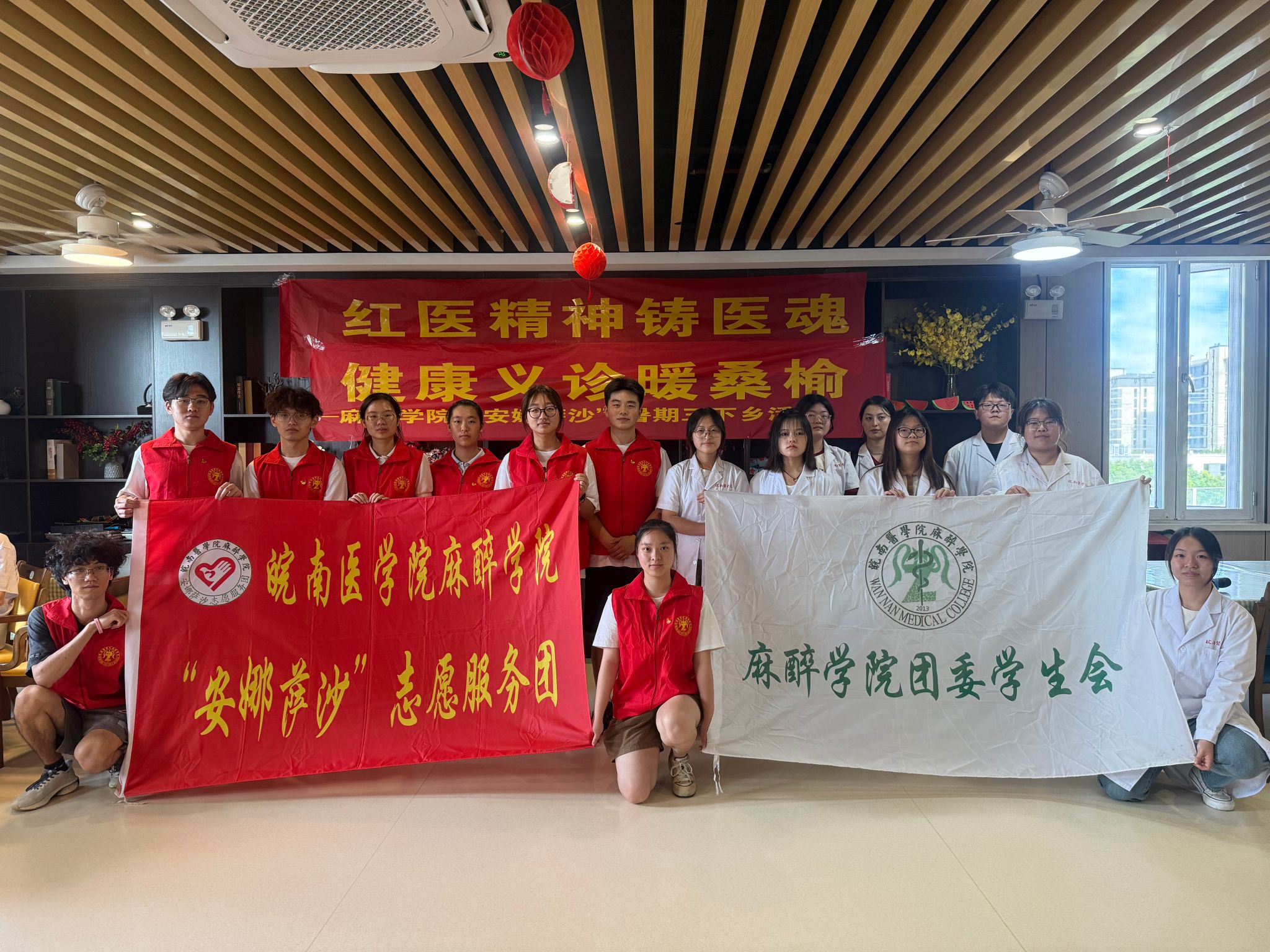 为深入学习贯彻习近平新时代中国特色社会主义思想和党的二十大精神,落实习近平总书记在五四青年节对全国广大青年的寄语,6月30日,麻醉学院“安娜萨沙”志愿服务团走进弋江区丰华康养中心开展暑期“三下乡”社会实践活动,旨在传承红医精神,引导团队成员争做新时代有理想、有担当的医学生。