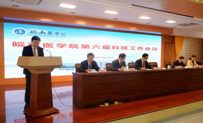 廖圣宝作题为“聚焦一流学科建设,推进医教研用协同发展,着力提升学校科技影响力”的科技工作报告。报告回顾了过去两年科技工作,指出过去的两年,学校科技工作成绩显著、亮点突出:临床医学学科首次进入ESI排名前1%;获批安徽省博士学位立项建设单位;获批国家发改委“疑难病症诊治能力提升工程项目”,项目建设经费1.5个亿;年度纵向科研经费突破1000万;获批安徽普通高校重点实验室;获得安徽省科技进步奖二等奖3项。两年来,在全校上下共同努力下,学校完成了第五届科技工作会议提出的预定目标,并呈现出持续性发展的良好态势,主要表现在:学科及团队建设持续推进,学位点建设工作成绩斐然,科研平台建设成效显著,科技成果取得重大突破,科研管理机制不断创新,学术交流氛围愈发浓厚。报告客观分析了我校科技工作面临的形势和存在的问题,明确了我校未来科技工作的总体思路与主要目标。