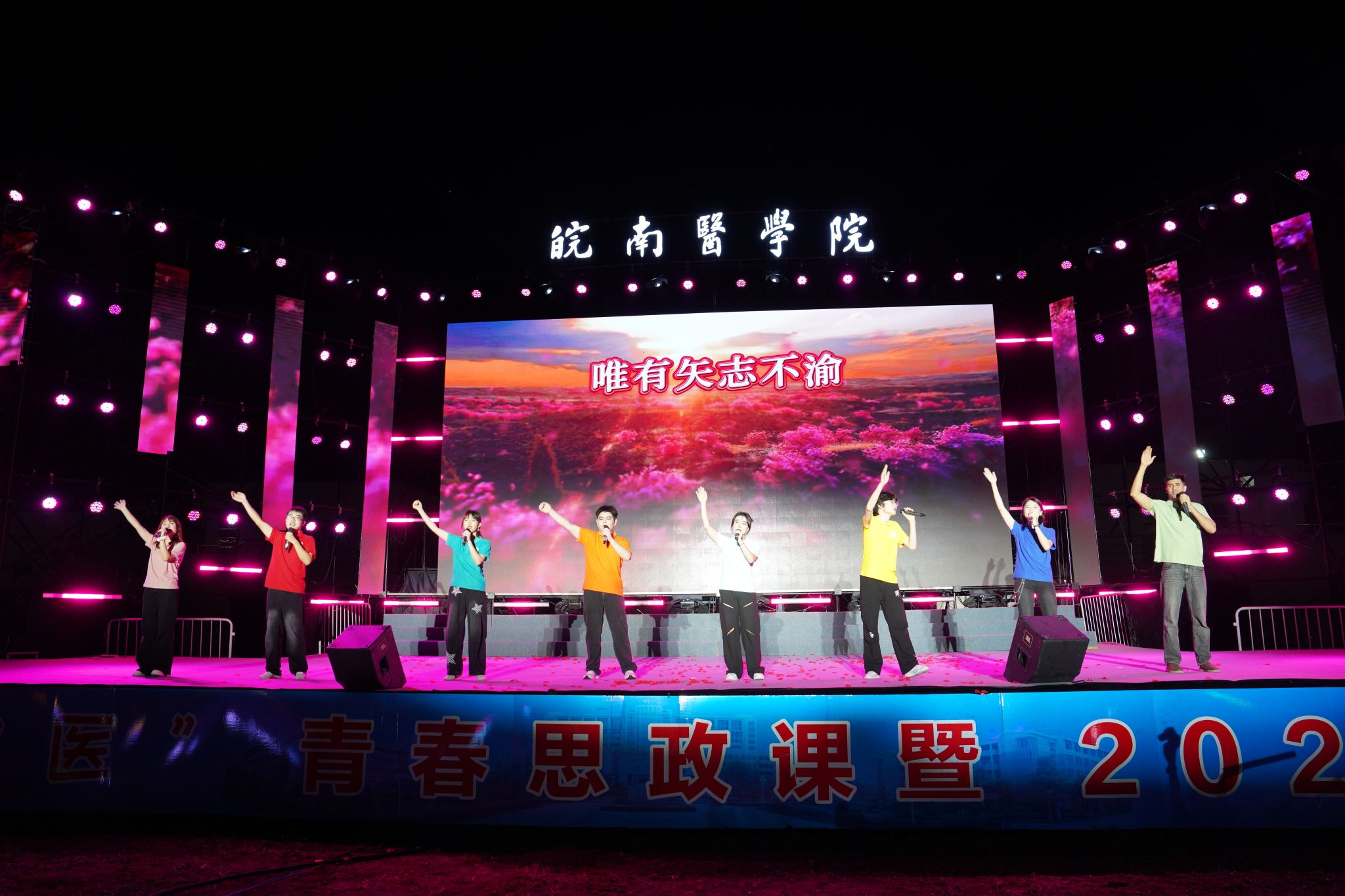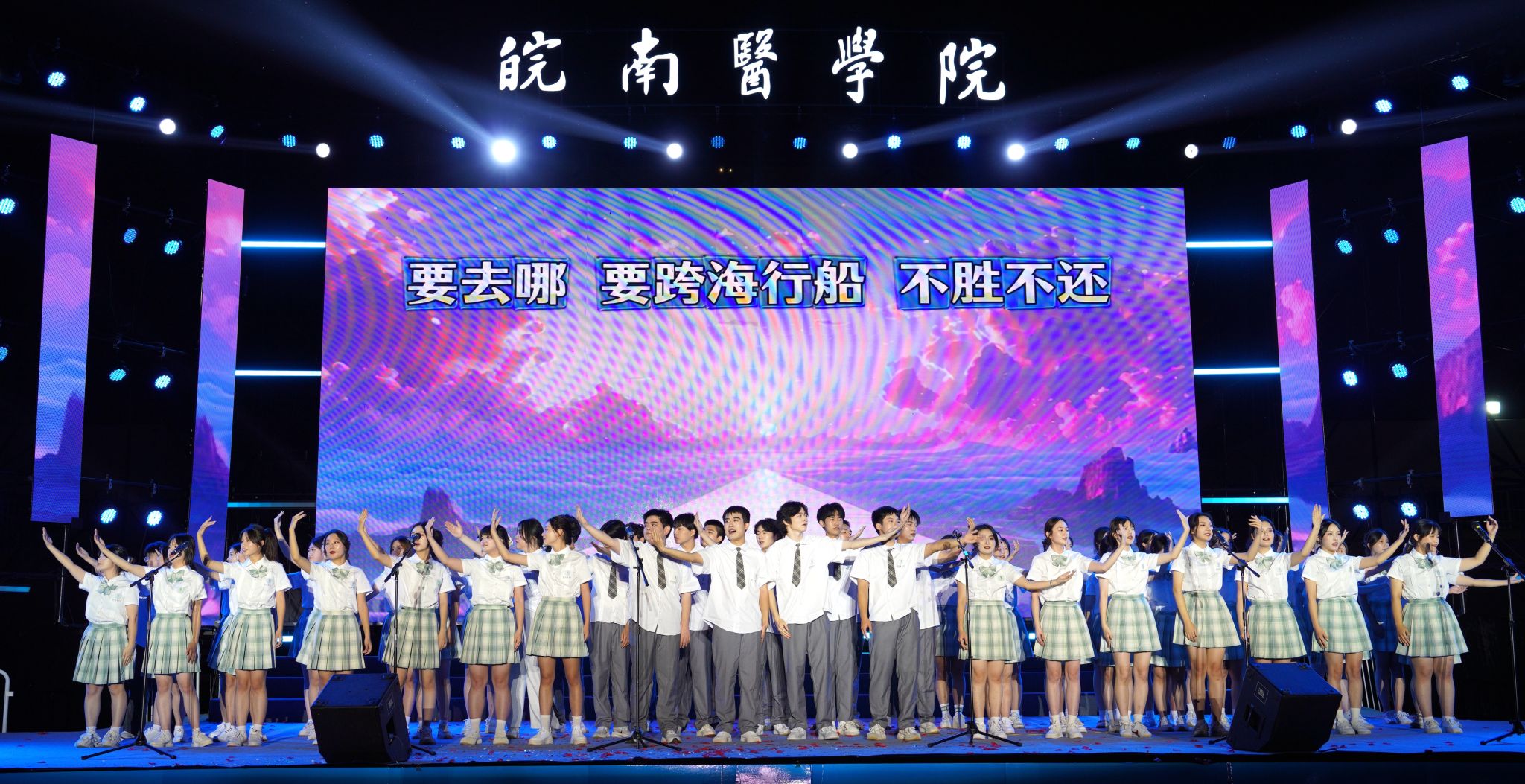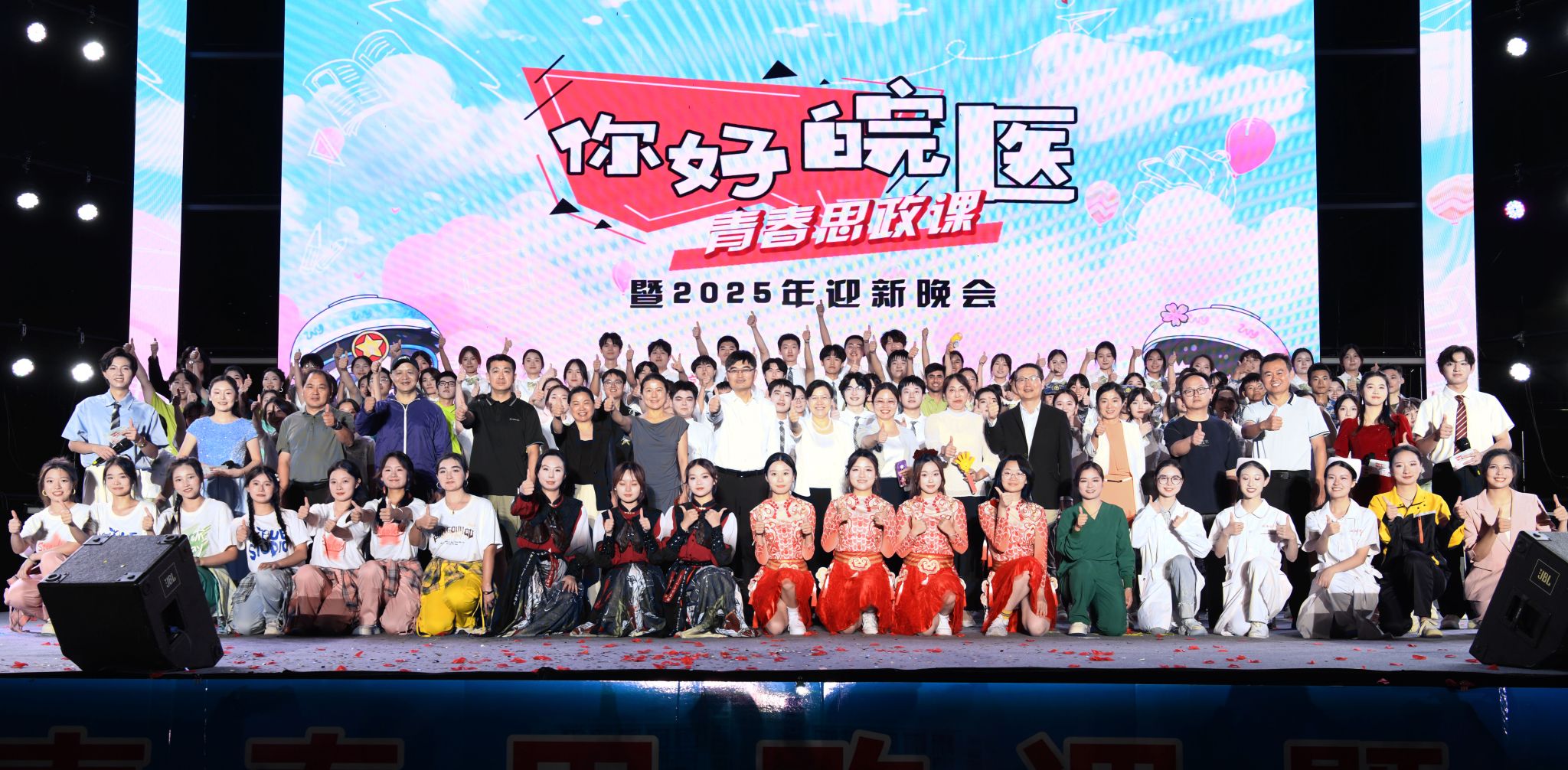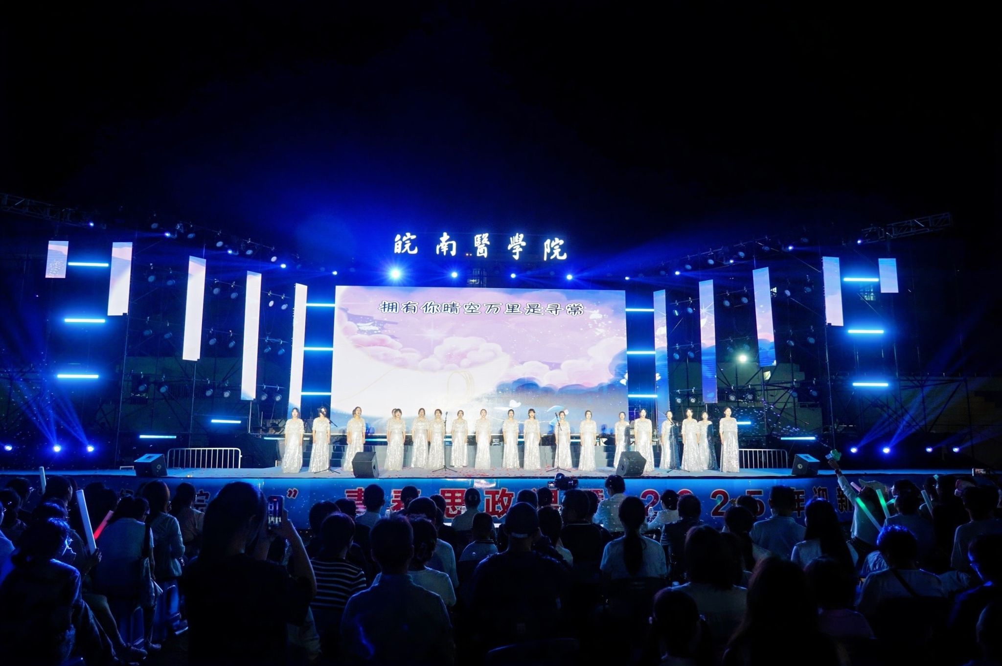 与祖国共命运、与时代同步伐、与学校齐发展,作为我校“医路花开”文化育人品牌中的重要活动,“你好,皖医”青春思政课暨迎新晚会已举办三届,通过“艺术+思政”“故事+榜样”的形式,用具有家国情怀、文化底蕴和皖医气质的“青春思政课”,引导皖医学子强化责任担当、明晰成长航向、积蓄奋进动能,立志成长为怀揣理想、仁心仁术,敬畏生命、甘于奉献,不负时代、勇毅前行的新一代皖医人。青春的序曲已然奏响,奋斗的征程正在开启,2025级新学子将带着这份感动与力量,在医学殿堂中勇敢追梦圆梦,在学校高质量发展的新征程上,奋力书写青春最亮丽的篇章。(邵馨婷、王康淇/文  吴小婉、李晓晓/摄)