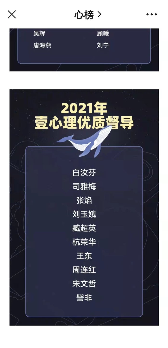 近日,国家级心理学专业平台“壹心理”主办的“迎新年心理行业发展论坛”圆满落幕。本次论坛以“心场景 新未来”为主题,以线上主题演讲、对话的形式展开,邀请行业内外众多领域的专家、学者、从业者以及来自教育、医疗、自媒体等相关领域知名人士与会,以心理学行业应用场景和从业者职业发展路径探索为主题进行热烈讨论,对心理学行业进行了多视角、多领域、深层次的解读与分享,对其未来发展提出了憧憬展望与建设性思路。论坛进行了综合性评选活动,我校人文与管理学院心理学教研室杭荣华教授基于在心理督导工作方面的优异表现,获评“十佳优质督导师”荣誉称号。