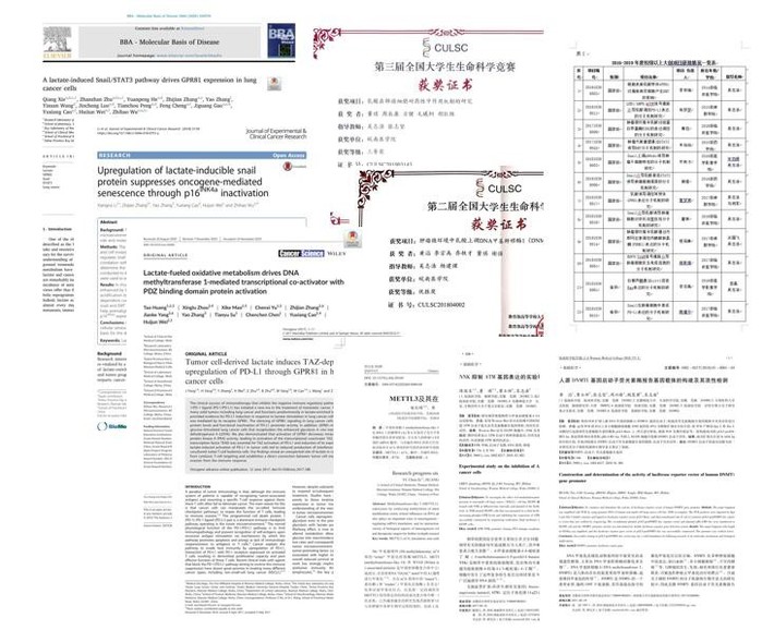 通过四年来的不断摸索,“精准医学”科研兴趣小组取得了喜人的成绩,先后指导本科生获国家级、省级大创项目和校大学生科研资助项目20项,发表高水平科研论文15篇(二类以上11篇,单篇IF最高7.9),2020年前三个季度,以本科生为第一作者发表高水平SCI文章3篇:黄滔(临床医学院)、周兴路(检验学院,并列第一)等,Cancer Science (2020),IF=4.966;谢强(药学院)、朱站站(药学院, 并列第一)等,BBA- Molecular basis of disease (2020),IF=4.352;董琪(临床医学院)、周辰康(检验学院,并列第一等,Cell Communication and Signaling (2020),IF=4.344)。