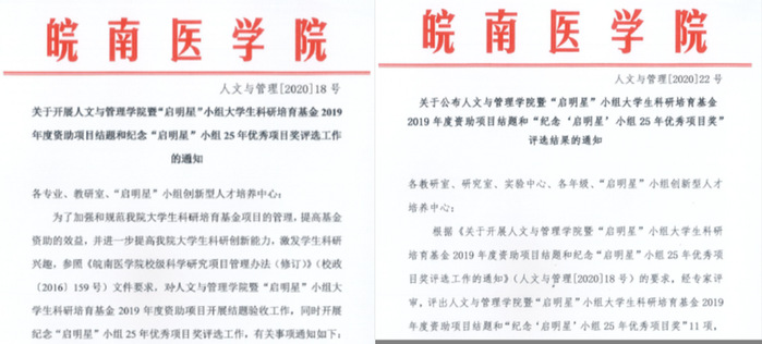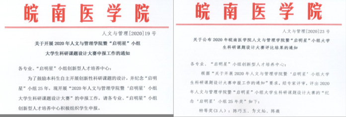 不同年级的“启明星”小组成员,分别积极参加人文与管理学院暨“启明星”小组大学生科研培育基金2020年度资助项目申请、2019年度资助项目结题与“纪念‘启明星’小组25年优秀项目奖”申报,以及2020年人文与管理学院暨“启明星”小组大学生科研课题设计大赛的申报。“启明星”小组成员共获得人文与管理学院暨“启明星小组大学生科研培育基金2020年度资助项目18项,顺利通过2019年度资助项目结题验收25项,获“纪念‘启明星’小组25年优秀项目奖”11项,获2020年人文与管理学院暨“启明星”小组大学生科研课题设计大赛“纪念‘启明星’小组25年奖”特等奖2项、一等奖3项、二等奖6项、三等奖4项。这些系列性课题设计和实施的训练,不仅实现了从“教学研究中的科研”之大学生创新训练项目申报,向“科学研究中教学”之科研课题的设计预申报的训练转化,训练了自主设计科研课题的创新能力及其相关质疑、思维、专业英语、标书撰写等能力。