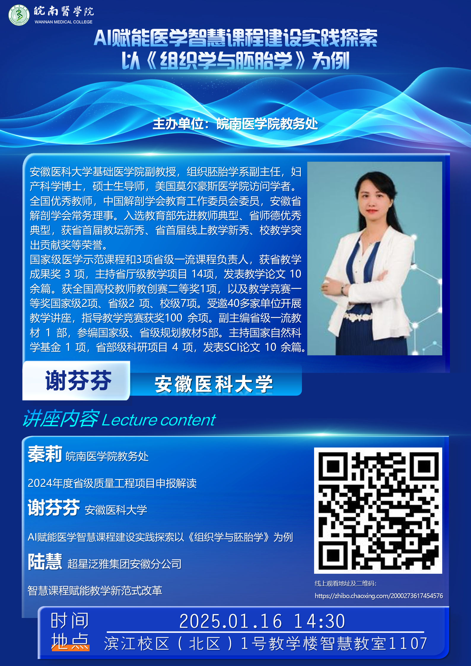 培训讲座:AI赋能医学智慧课程建设实践探索——以《组织学与胚胎学》为例